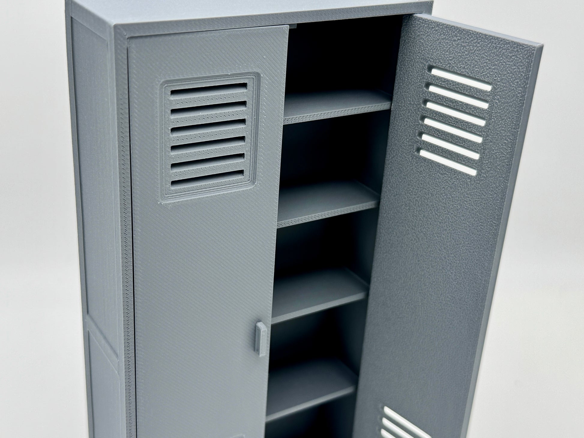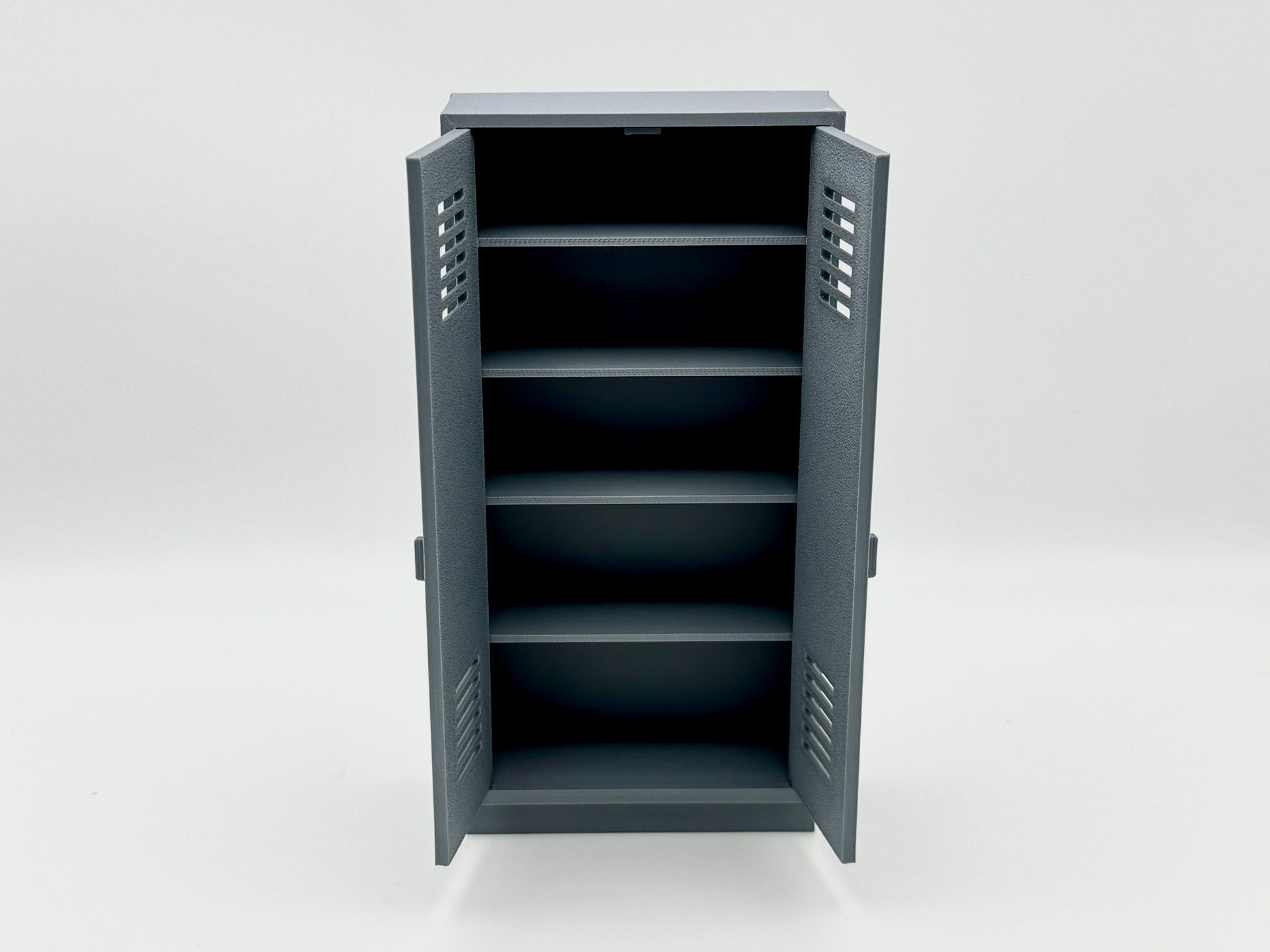 1:12 Scale accessories inspired by the G.I. Joe Classified Series are part of an armory series with multiple sizes of cabinets and racks for your custom layouts. This cabinet features double doors and five shelves to store items.