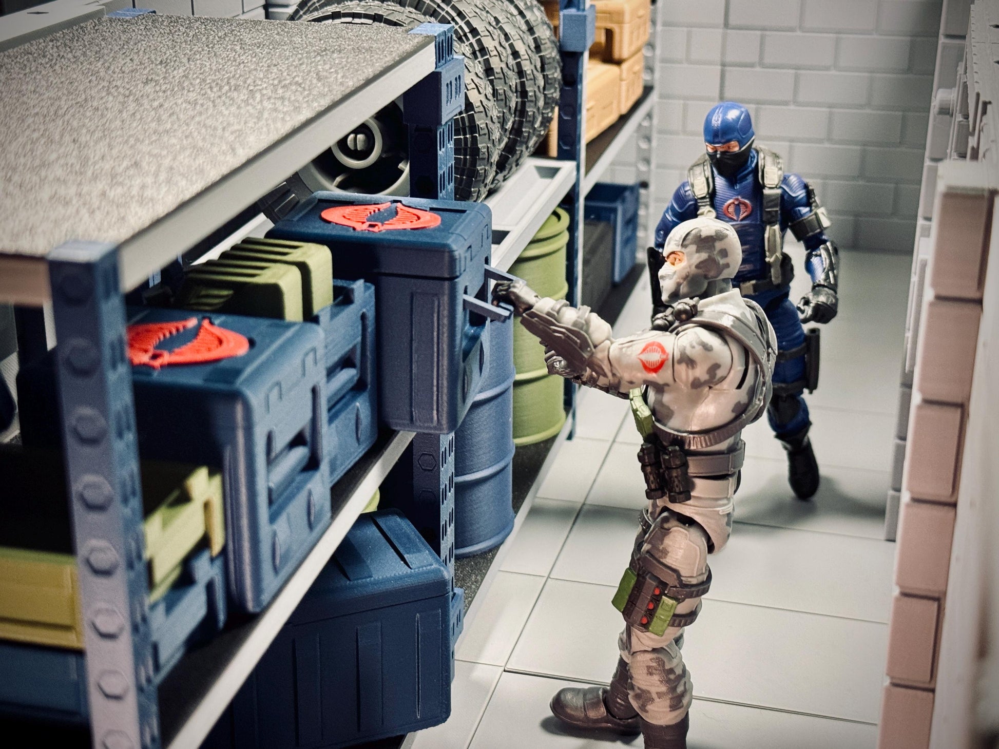 *Shelf Only* 1:12 Scale accessories inspired by G.I. Joe Classified Series are part of an armory series with multiple sizes for custom layouts. Add this Shelf to a Medium Rack System to store additional items and create a custom look. Works with G.I. Joe Classified, Marvel Legends, SH Figuarts, Mezco lines of figures.