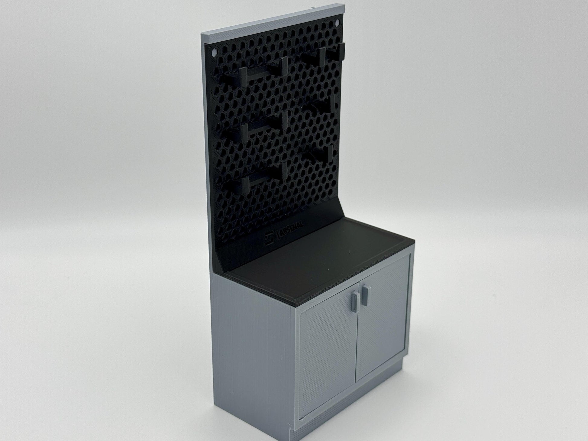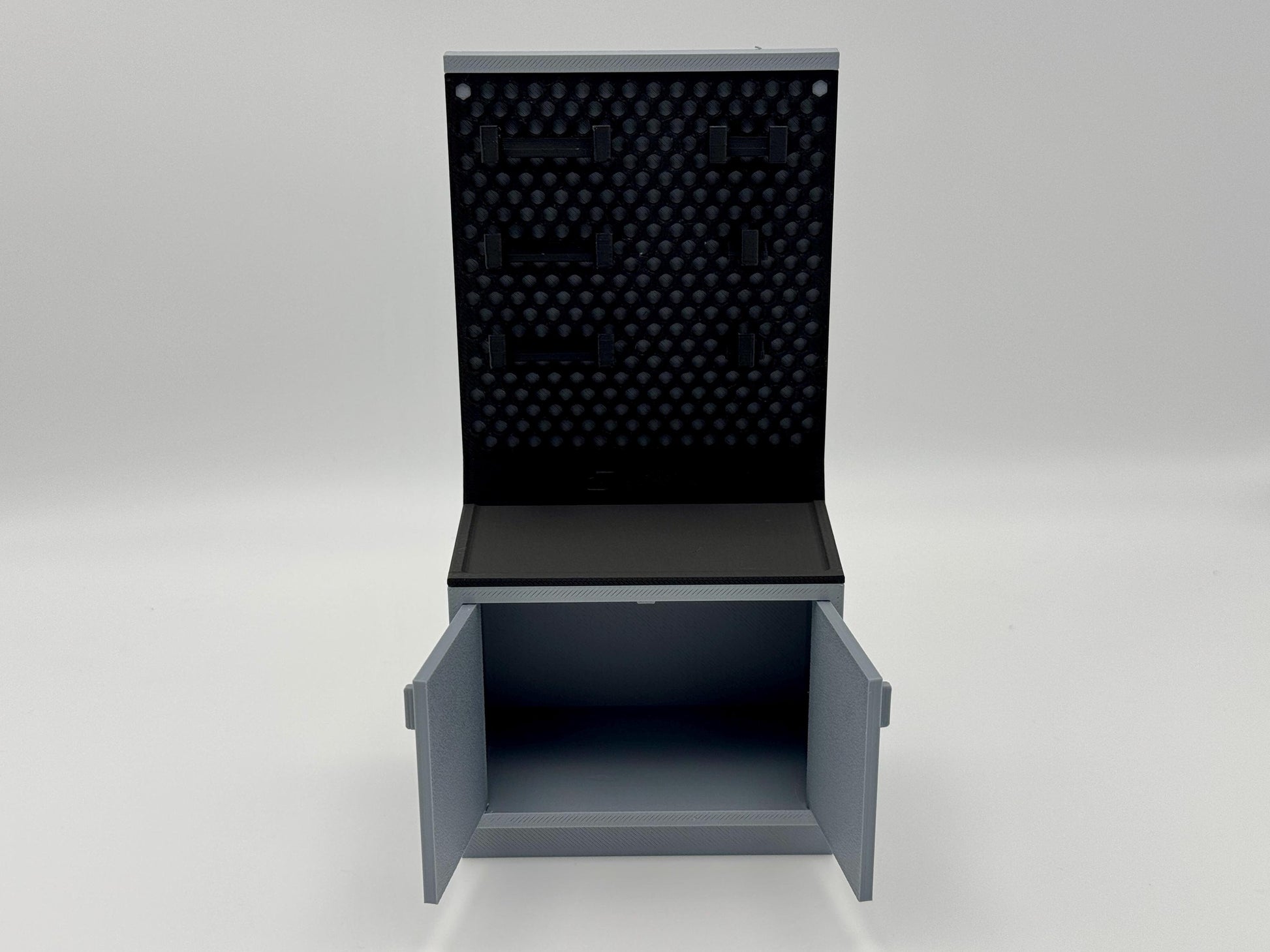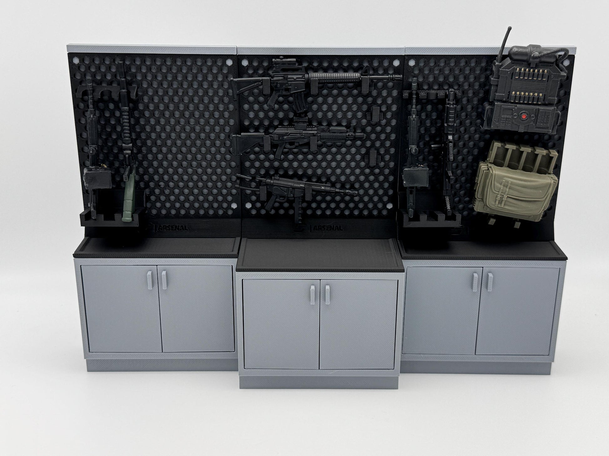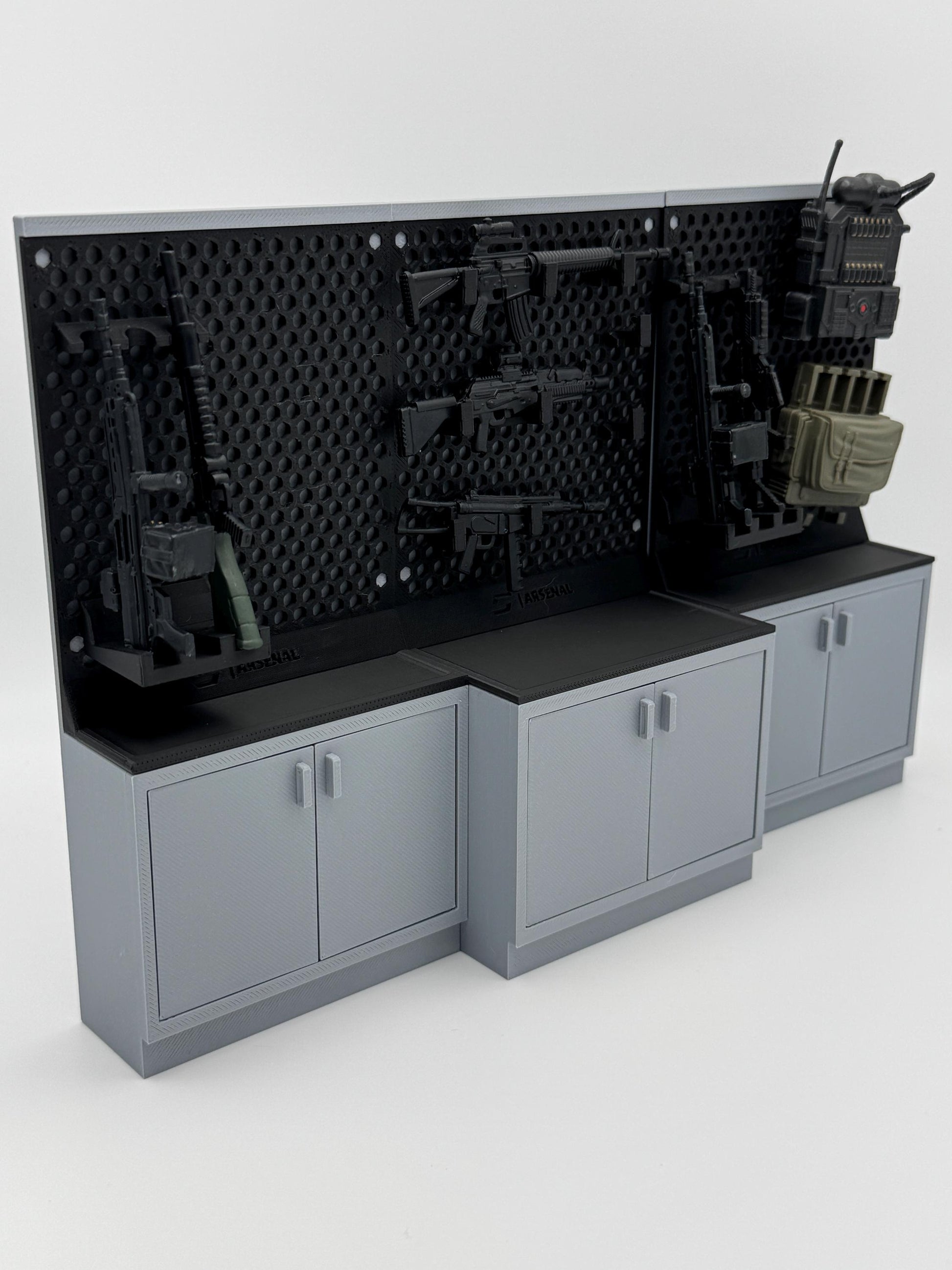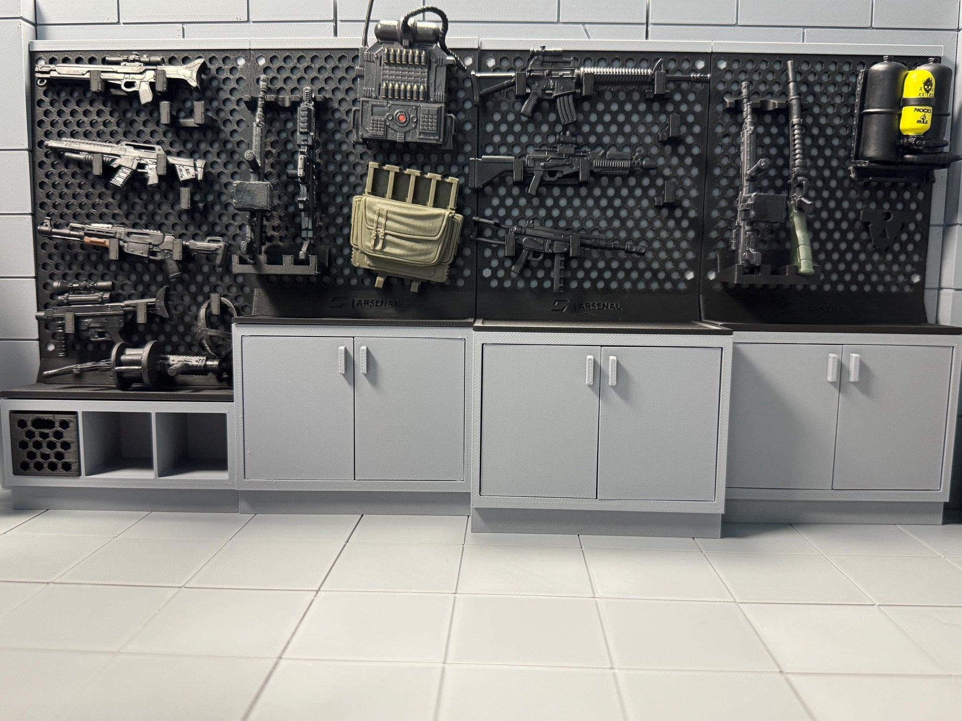1:12 Scale accessories inspired by G.I. Joe Classified Series and part of an armory series with multiple sizes of cabinets and racks for your custom layouts. Features a long gun rack that holds up to 8 guns. 6 storage cubes sized perfectly for helmets. Additional accessories available.