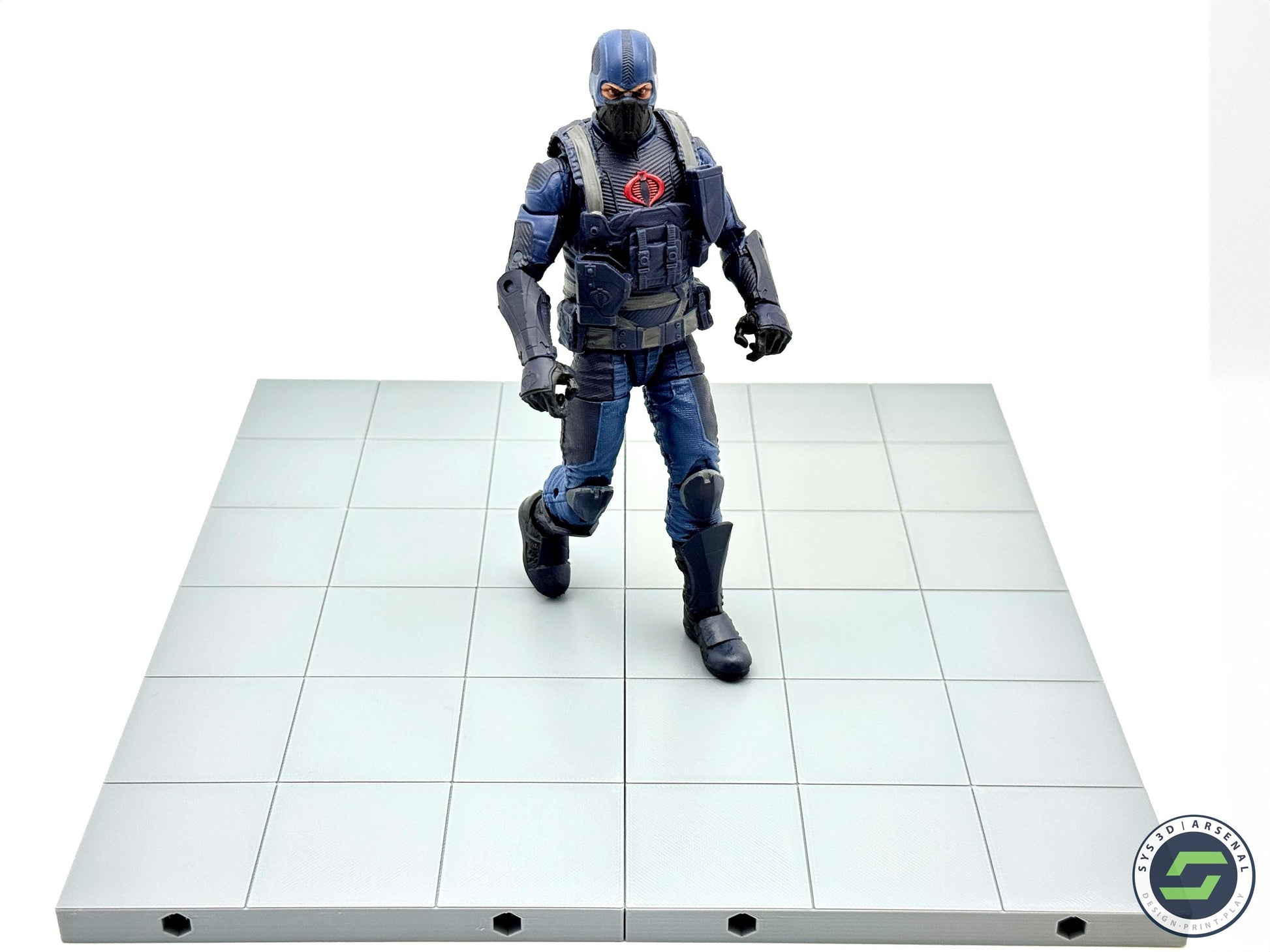 1:12-scale diorama collection inspired by G.I. Joe Classified Series. These diorama pieces are part of a series with coordinated walls, floors, and doors that can be displayed as separate focal points or placed side by side to create a large display. The "Base" floor panels have peg holes to attach the walls. These should be used on the perimeter of your diorama/room. Use the "Center" floor panels to fill in the interior to give your diorama depth. Floor panels only have details on the top side. Additional edge pieces can be purchased to give the floor panels a finished edge. Please review the images before purchasing. If you have questions or want to see a specific panel layout, feel free to send a message. Build your own or buy a set. Works with G.I. Joe Classified, Marvel Legends, and Valaverse.