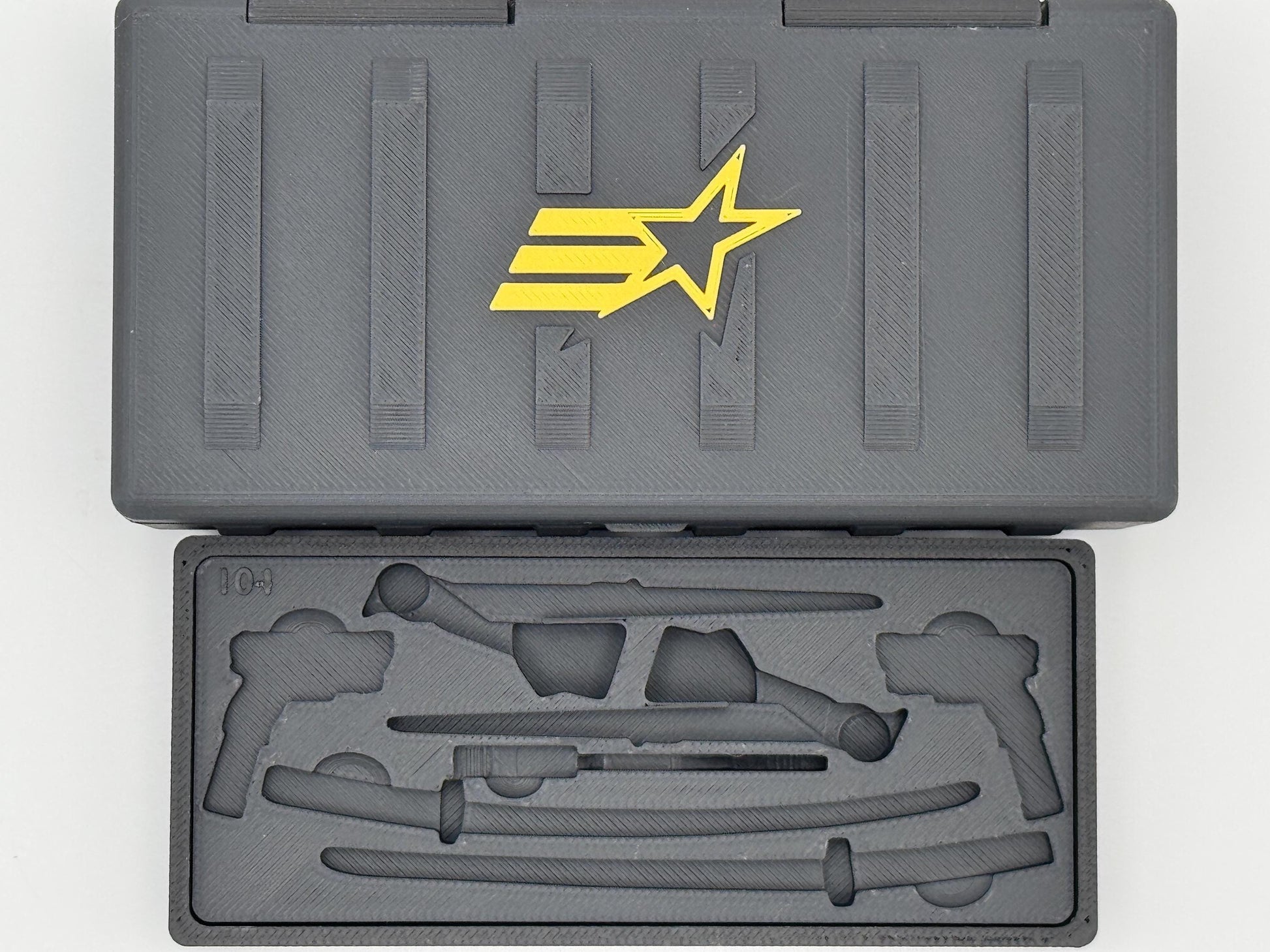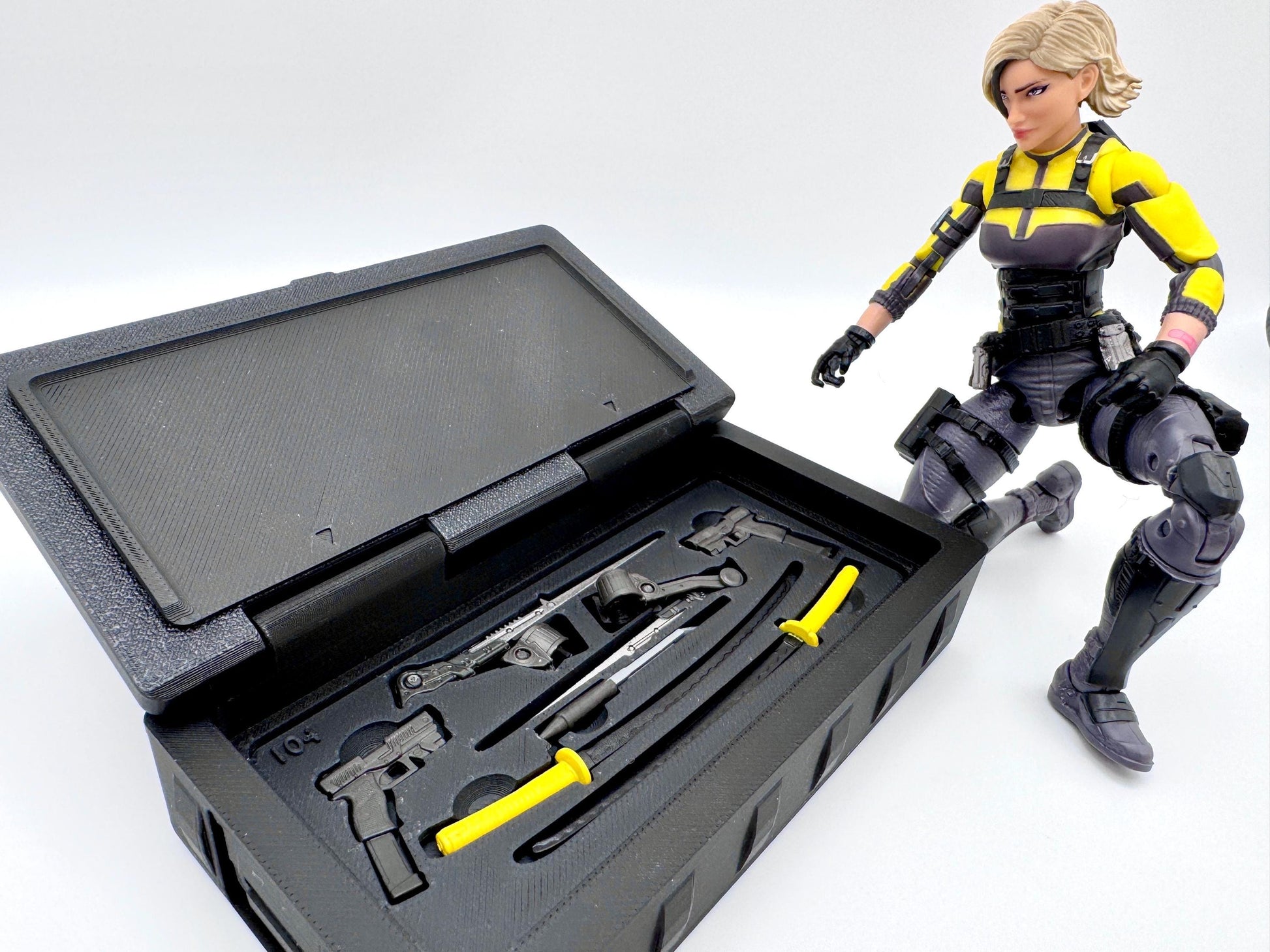 1:12 Scale crate is inspired by G.I. Joe Classified Series and is part of a series with multiple sizes that stack. The hinge is designed for the best possible look, utilizing a ball and socket hinge. The handles fold flush into the sides of the crate.