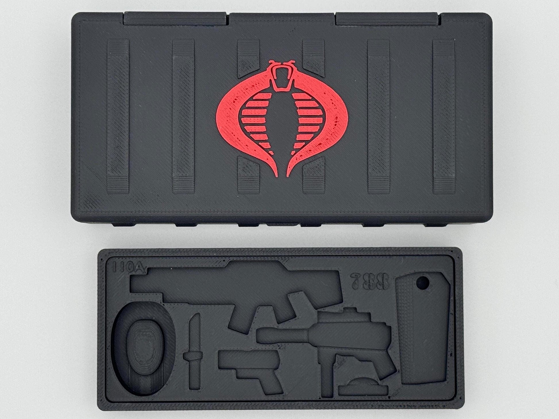 1:12 Scale crate is inspired by G.I. Joe Classified Series and is part of a series with multiple sizes that stack. The hinge is designed for the best possible look, utilizing a ball and socket hinge. The handles fold flush into the sides of the crate.