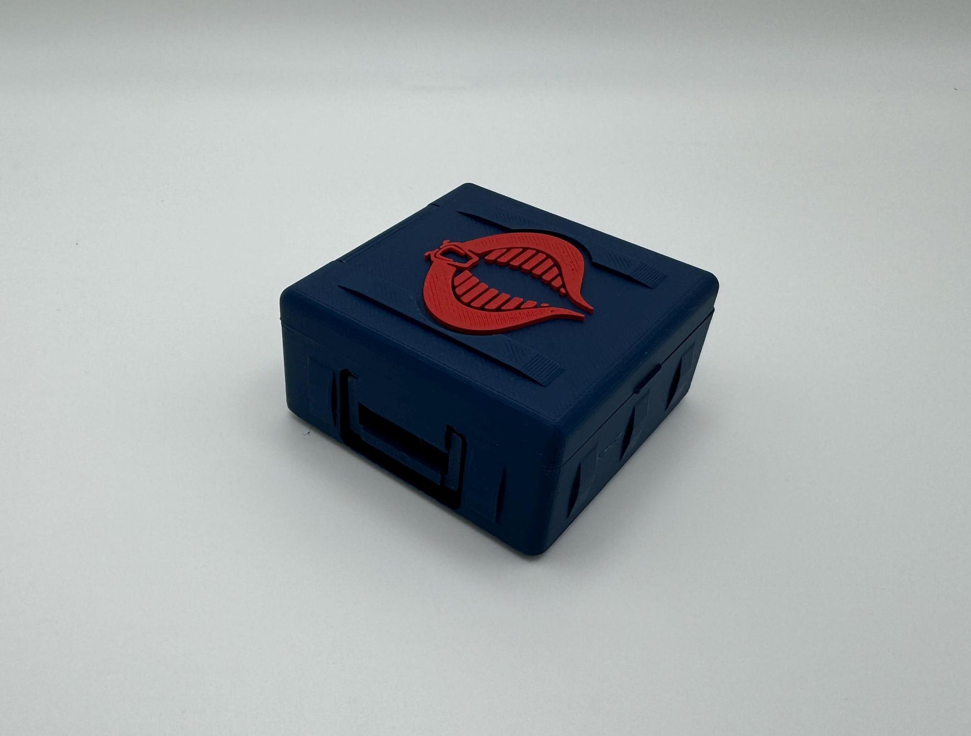 1:12 Scale crate inspired by G.I. Joe Classified Series and is part of a series with multiple sizes that stack. The hinge is designed for the best possible look, utilizing a ball and socket hinge. The handles fold flush into the sides of the crate.
