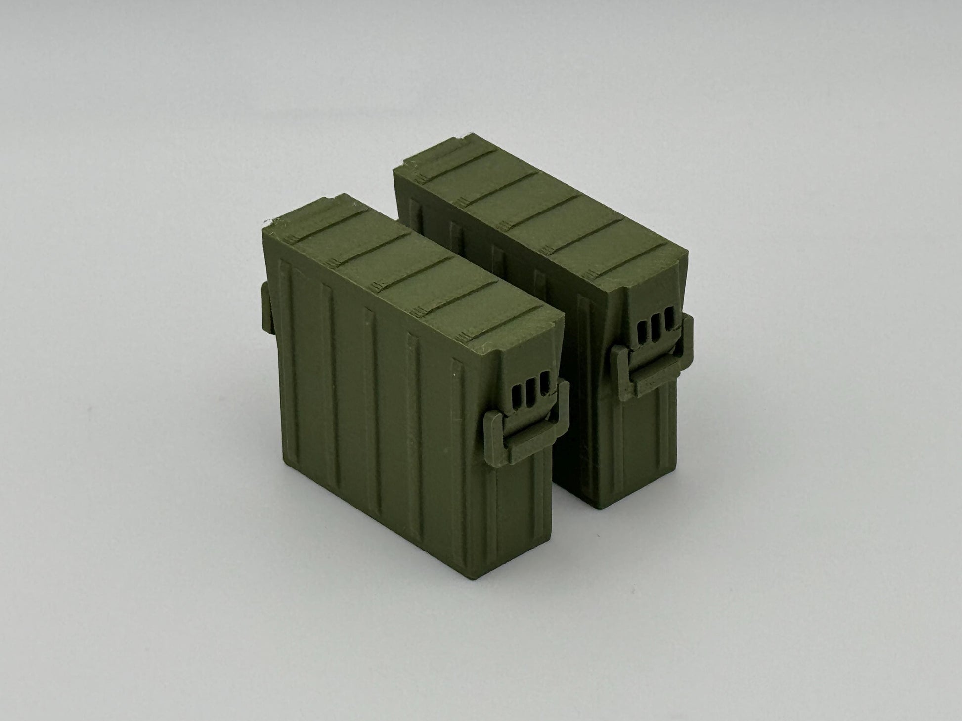 1:12 Scale crate inspired by G.I. Joe Classified Series is part of a multiple-size stacking crate series. These stackable ammo cases come in 2 sizes with movable handles that fold flush onto the sides of the case. This item can be used with G.I. Joe Classified, Marvel Legends, Valaverse, SH Figuarts, and Mezco figure lines.