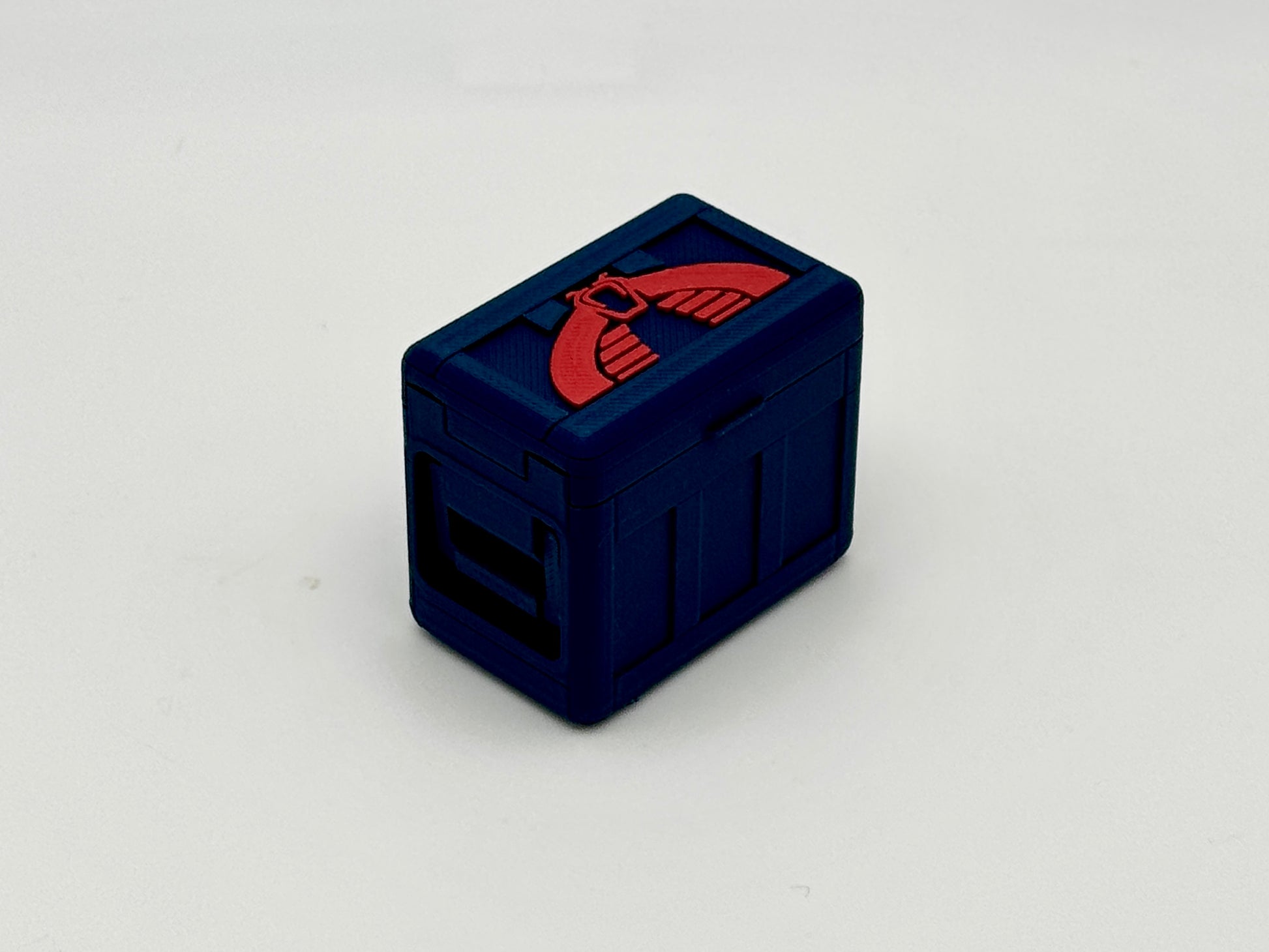 1:12 Scale crate inspired by G.I. Joe Classified Series is part of a multiple-size stacking crate series. Utility Crates are more true-to-scale when compared to Special Mission Crates. The Body-to-Lid notch secures the lid in place. The handles fold flush into the sides of the crate. The case contains five chemical/bio cylinders. The center of the cylinders is partially transparent.