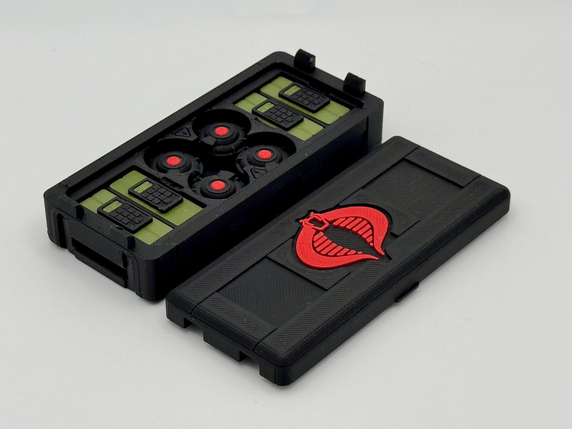 1:12 Scale crate inspired by G.I. Joe Classified Series and is part of a multiple-size stacking crate series. Utility Crates are more true-to-scale when compared to Special Mission Crates. The Body-to-Lid notch secures the lid in place. The handles fold flush into the sides of the crate.