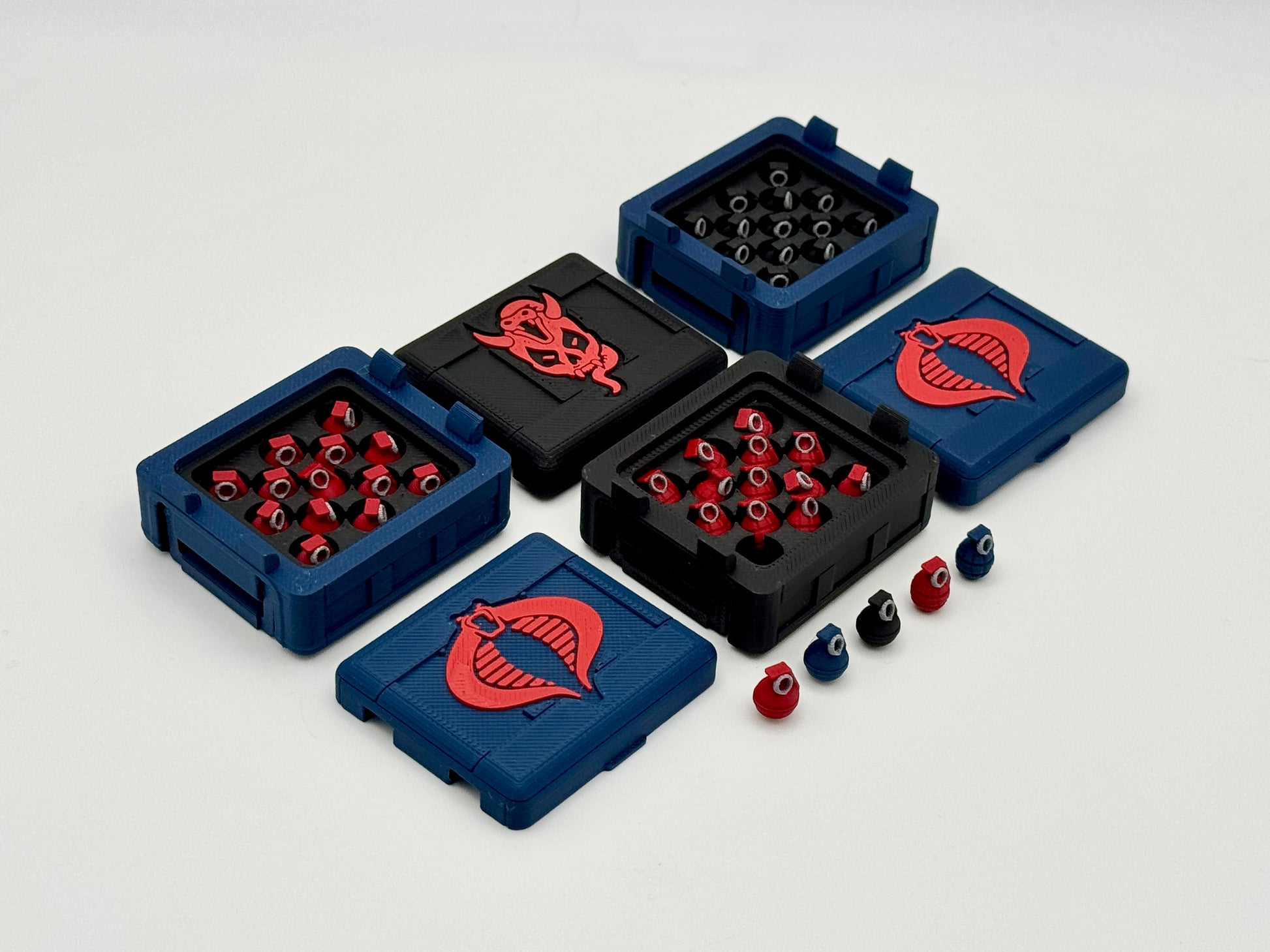 1:12 Scale crate inspired by G.I. Joe Classified Series and is part of a multiple-size stacking crate series. Utility Crates are more true-to-scale when compared to Special Mission Crates. The Body-to-Lid notch secures the lid in place. The handles fold flush into the sides of the crate. These grenades are modeled after the M67 and MKII grenades.