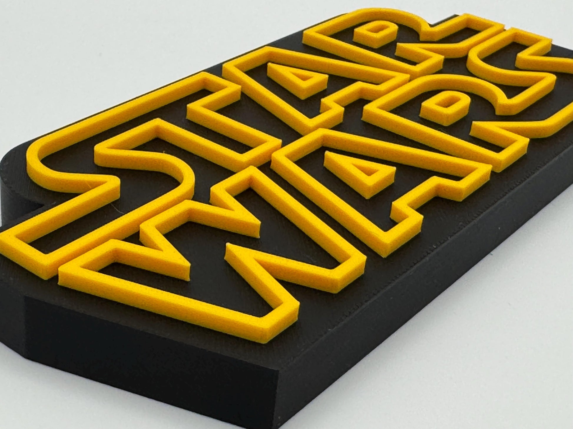 Add the classic Star Wars Logo to your desk, bookshelf, or display. Let the logo add some pop to your figure shelf or pictures. Custom 3D printed in 2 Colors and various sizes are available.